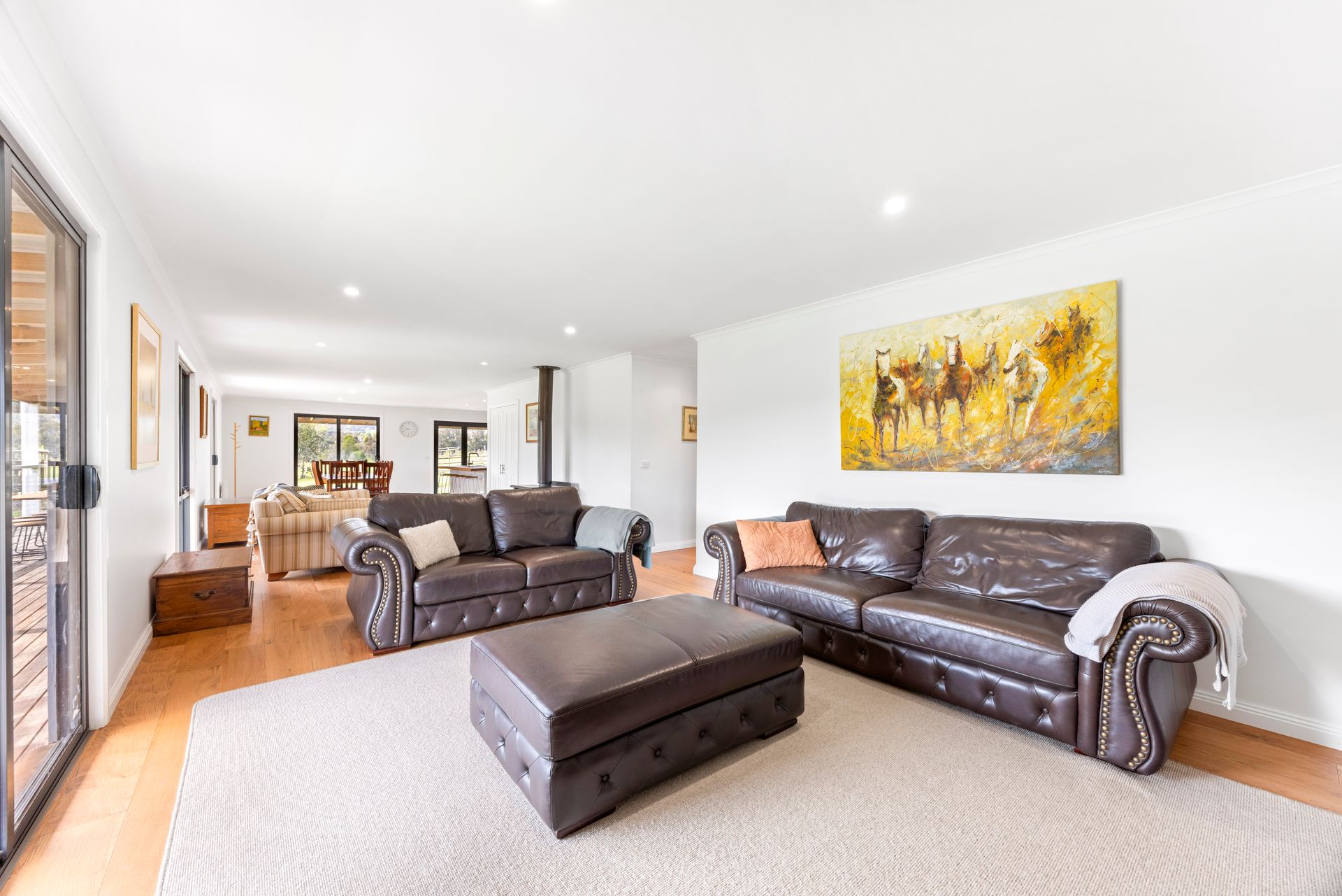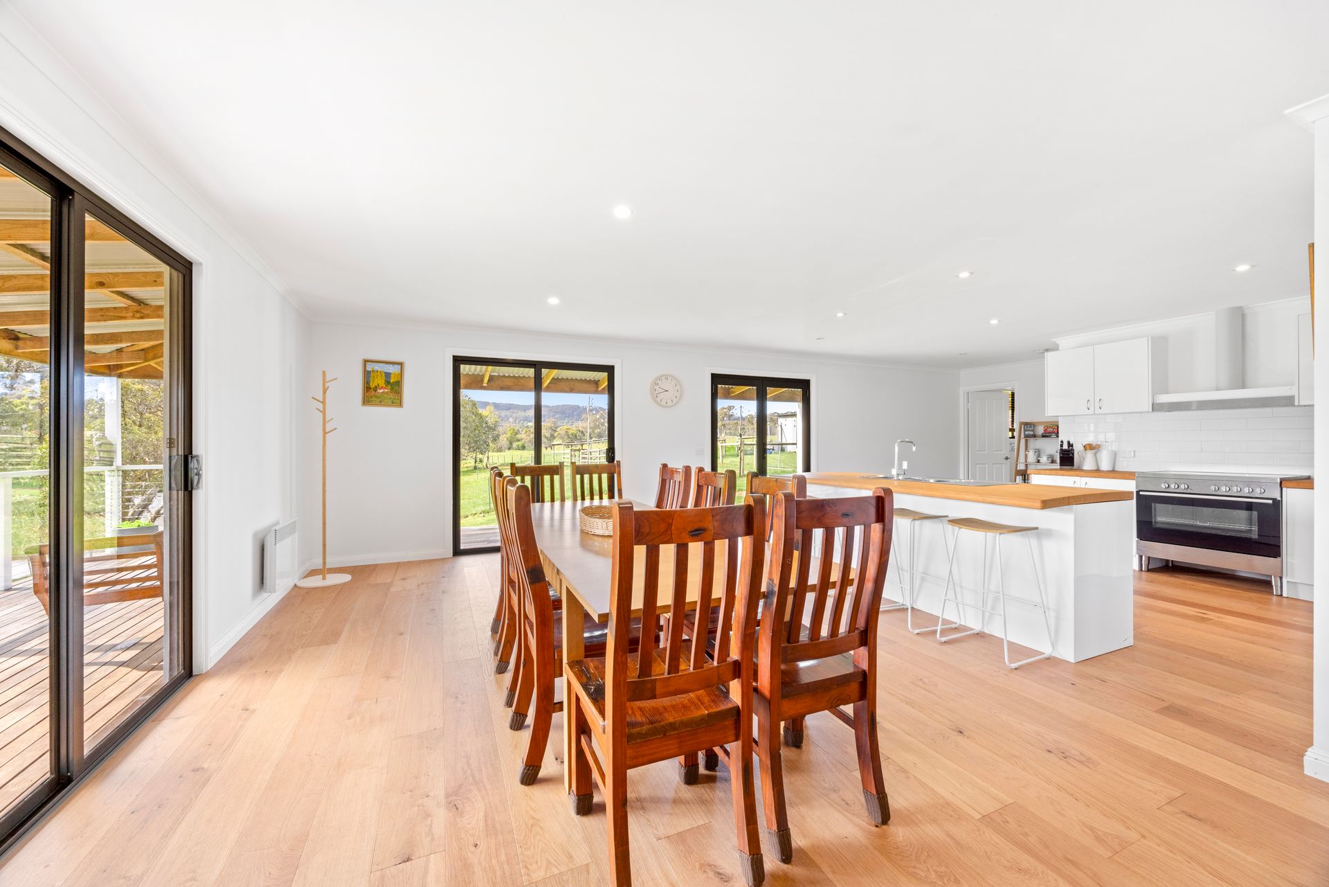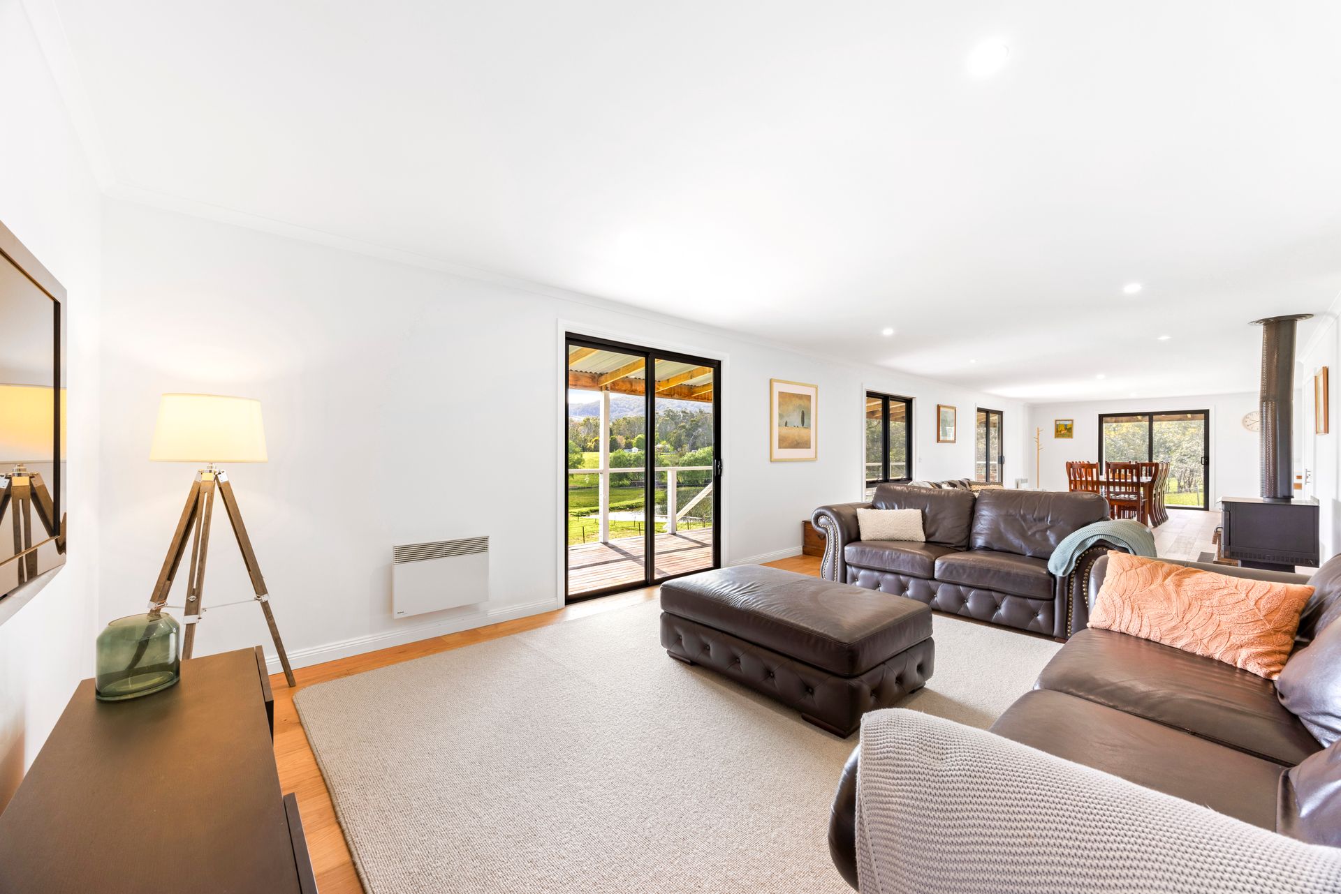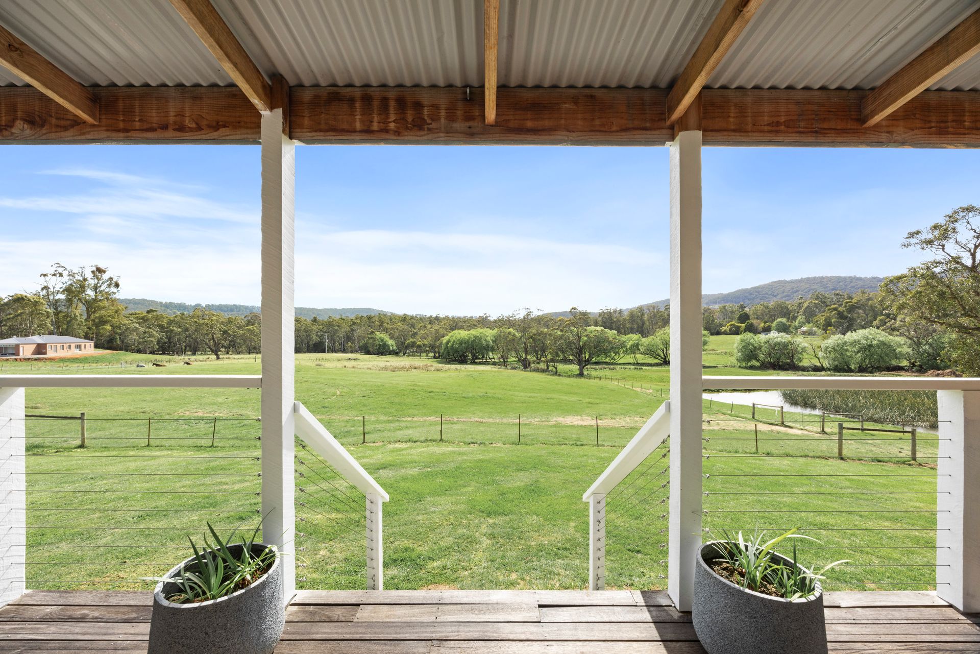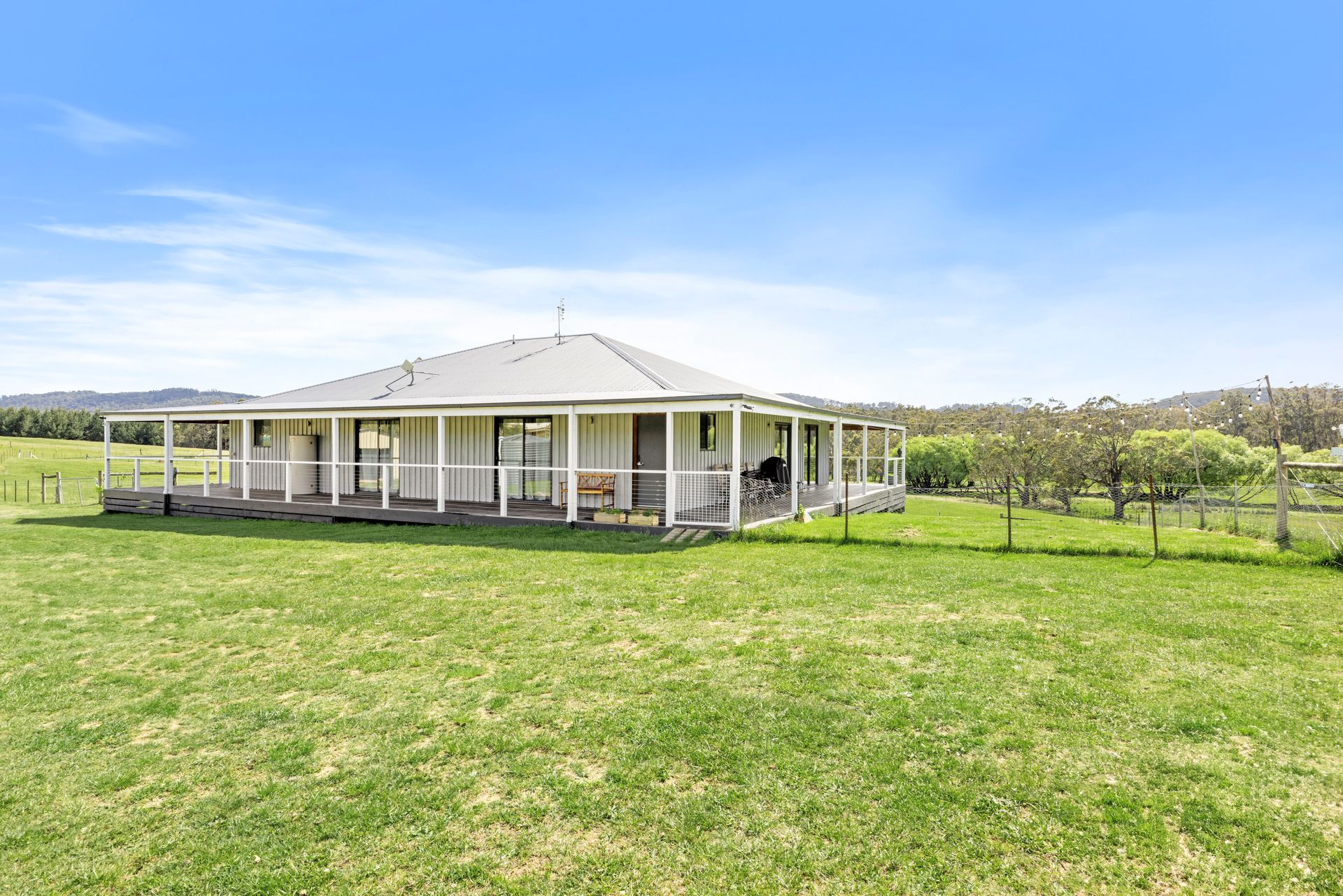 Outside, you can enjoy the wrap around verandah including a great northerly aspect over the property. Take a stroll around the property and discover the spring-fed dam and creek, where you might spot kangaroos, ducks, or deer grazing in the distance. Keep your eyes peeled for wombats, colorful parrots, and a variety of other native birds and wildlife that call this area home.