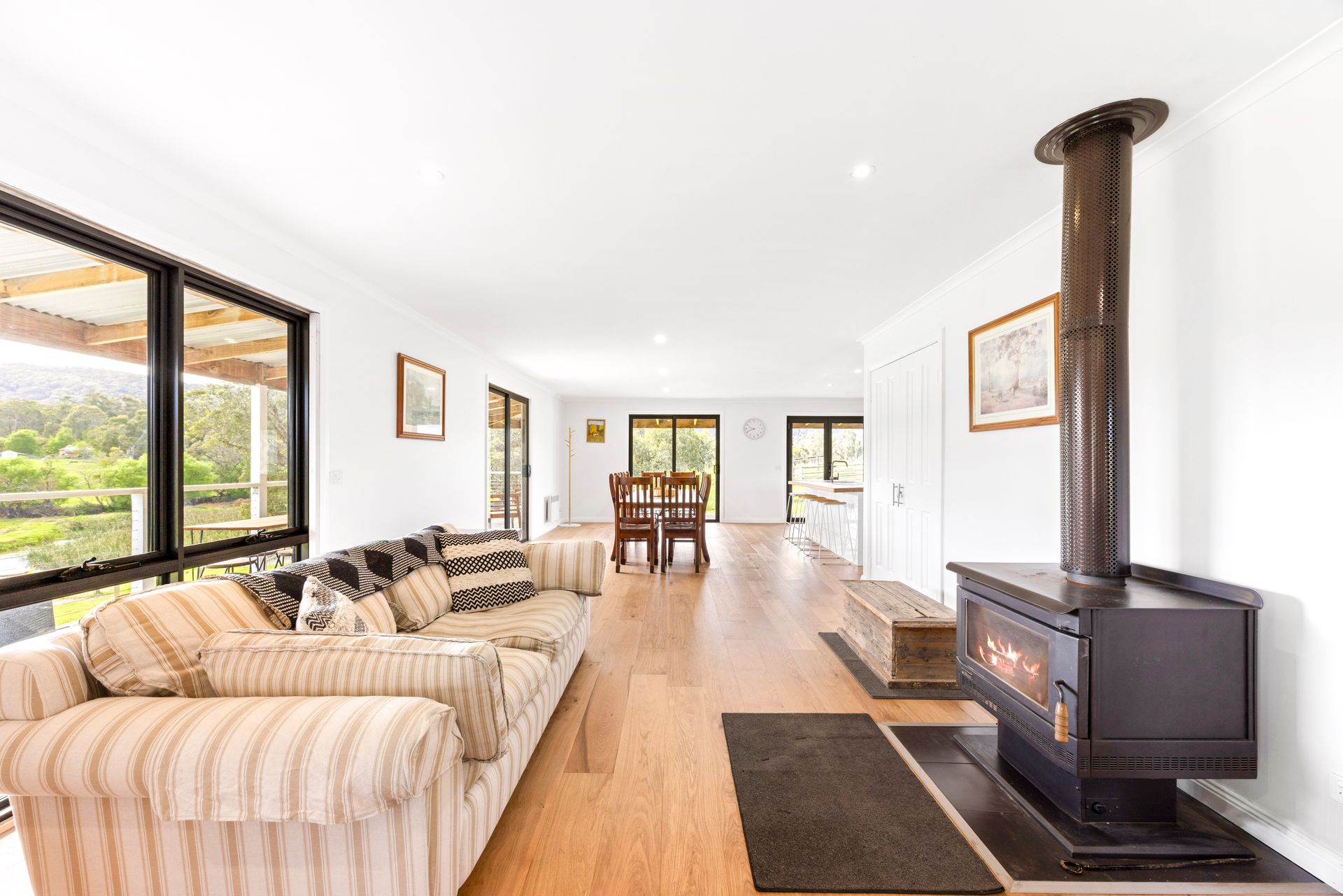 Warm up on chilly evenings beside the slow combustion heater in the living area, where you can unwind with loved ones or curl up with a good book.