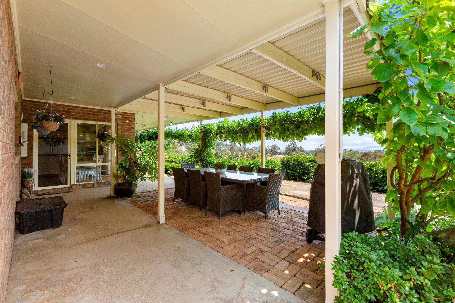 Outdoor entertaining area including Gas BBQ (Webber Q) and outdoor setting.