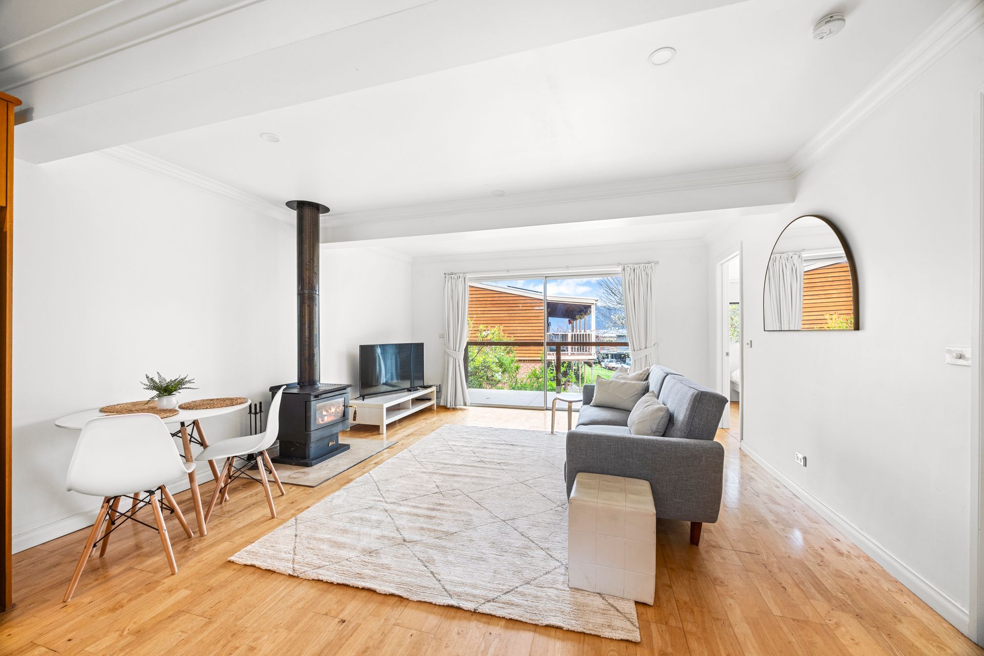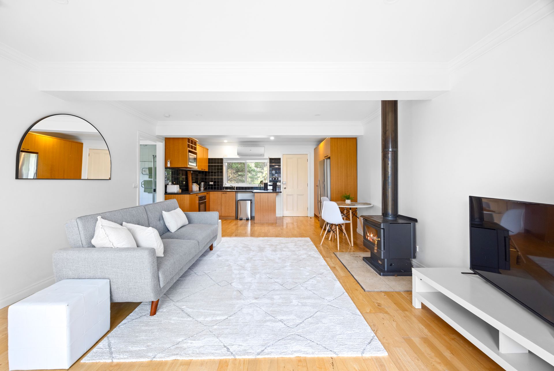 Open-plan living/dining area with comfortable seating and a flat-screen TV