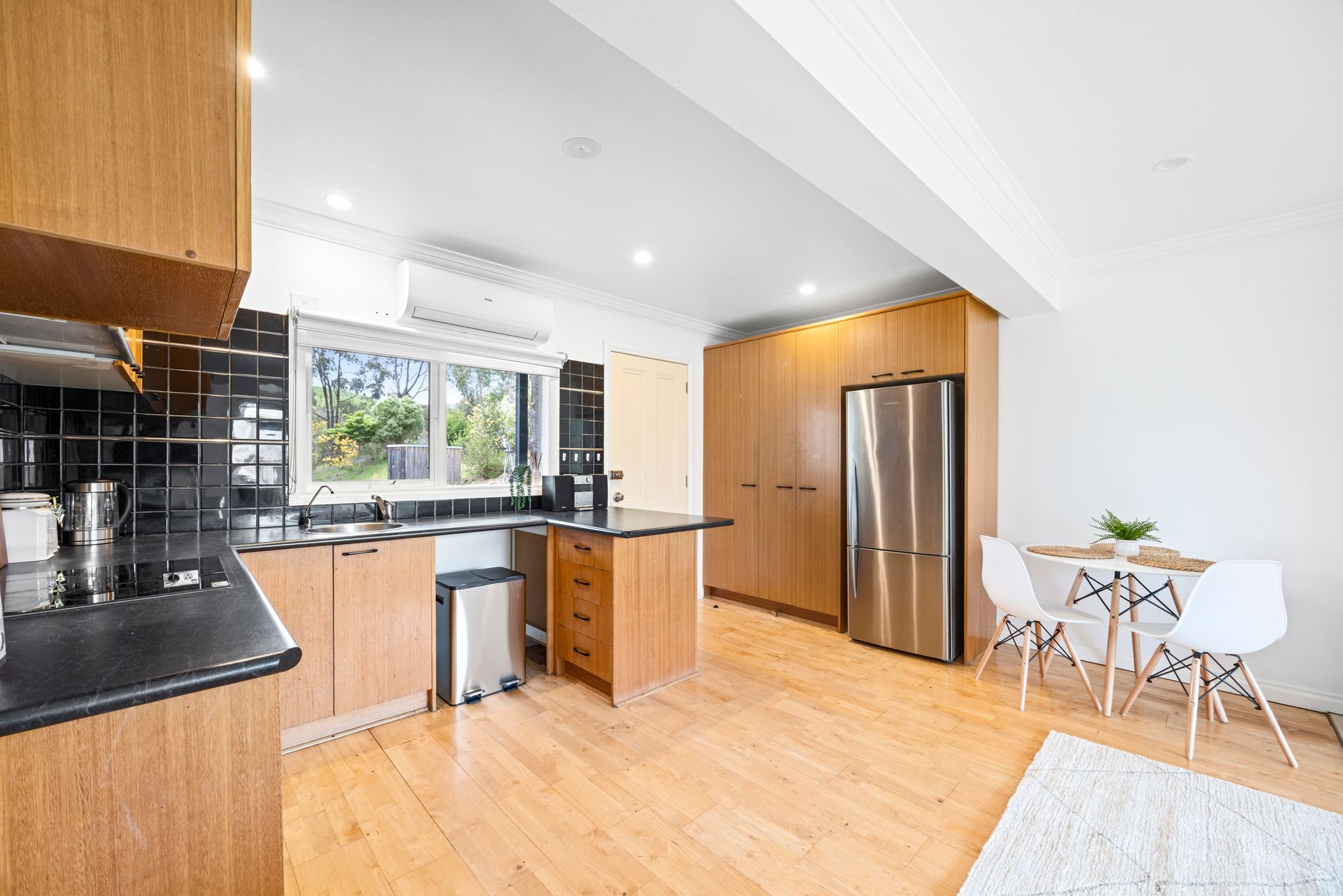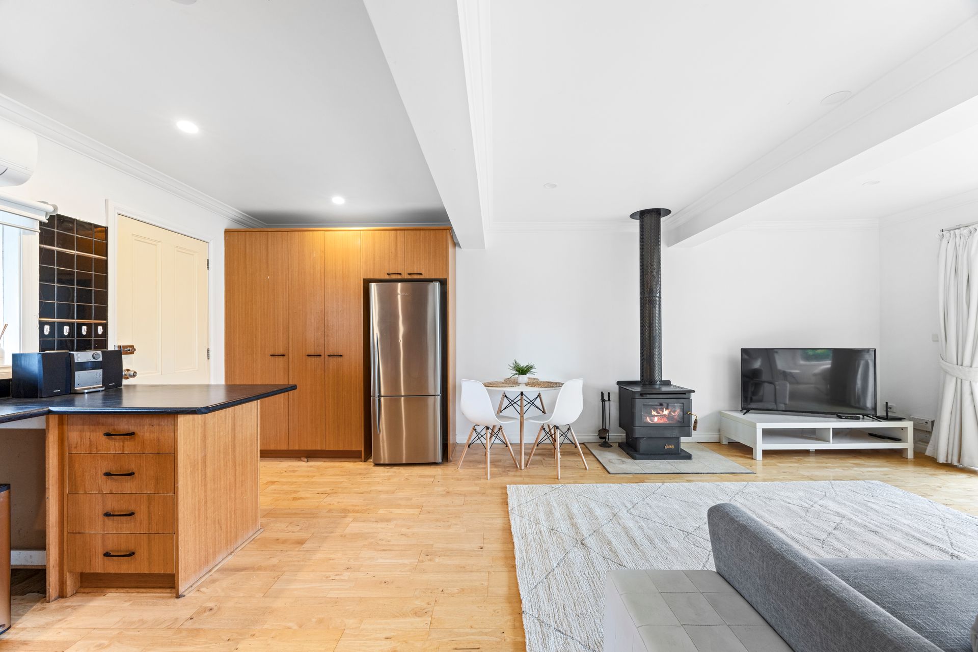 Fully equipped kitchen with stovetop, microwave, fridge, toaster & kettle