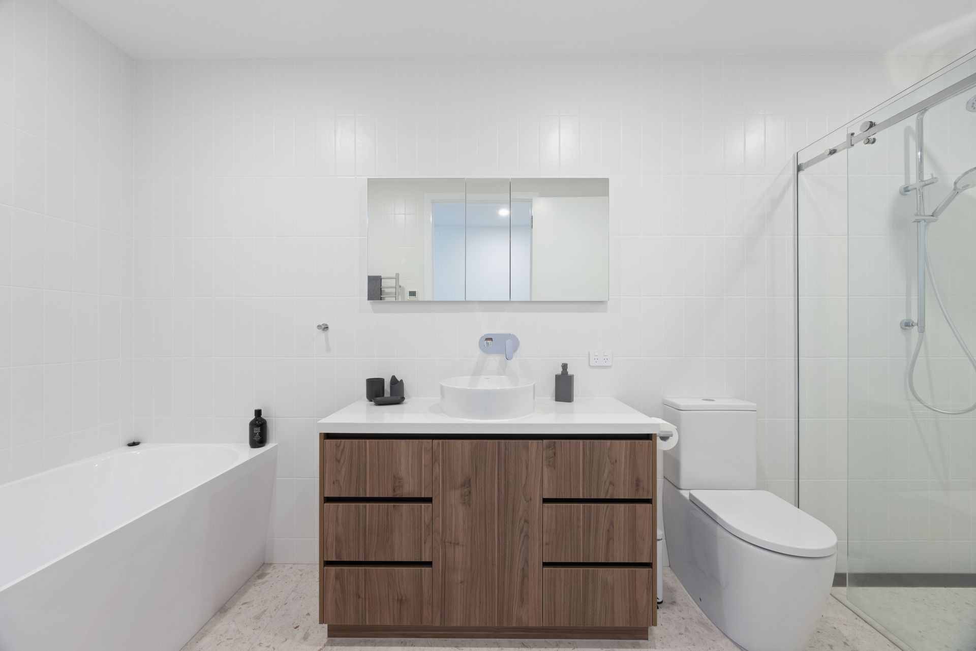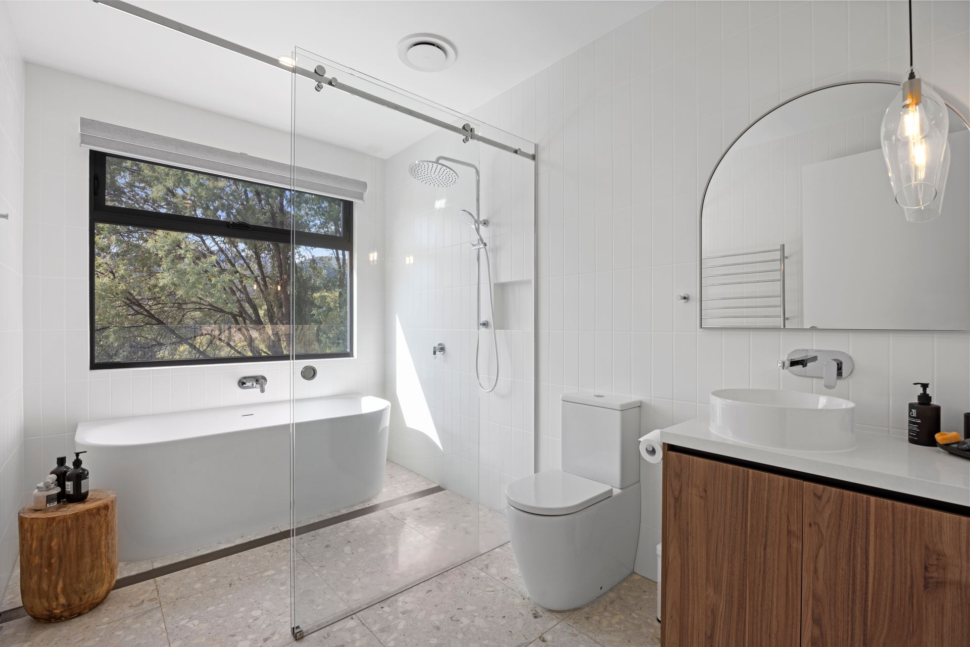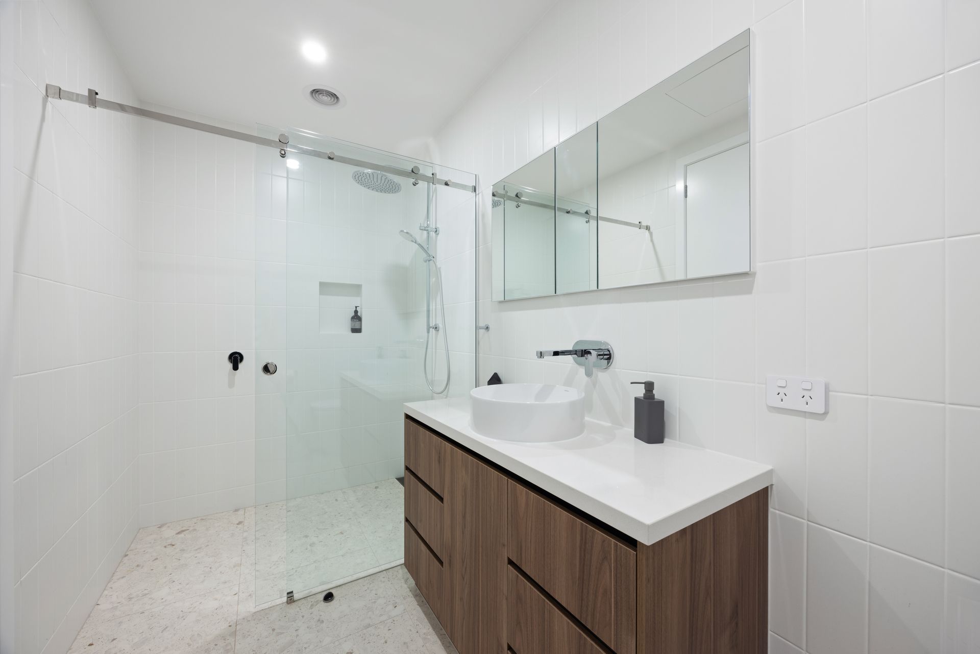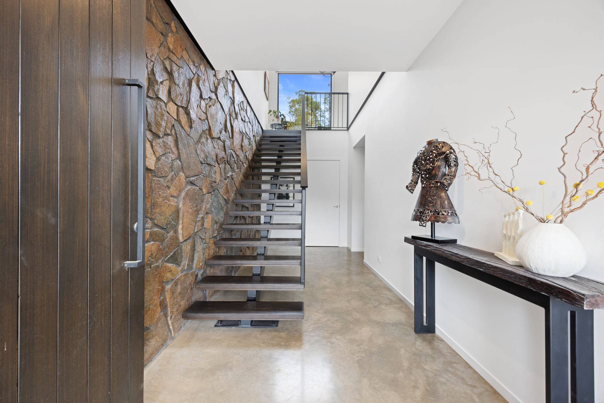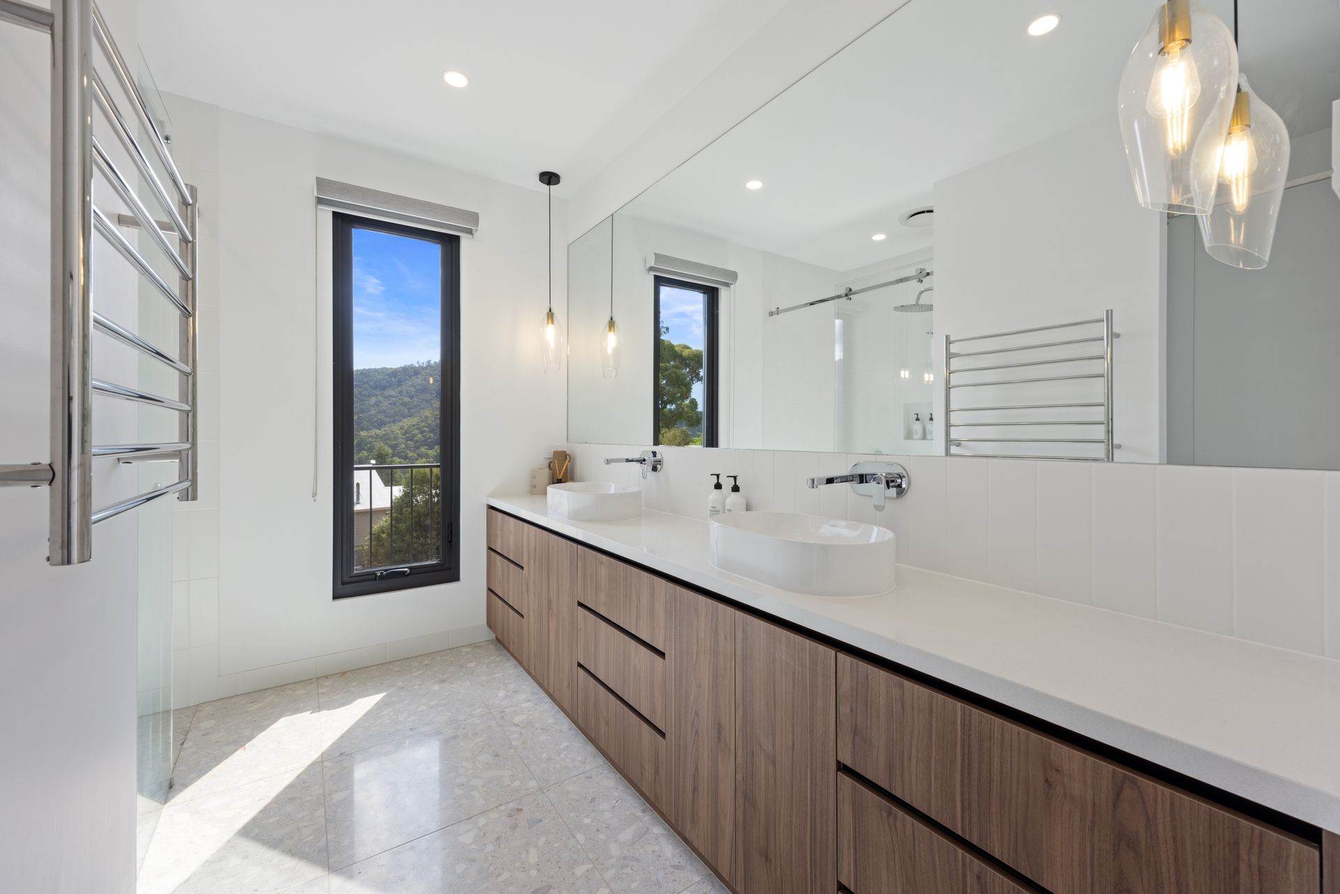 The upstairs level hosts three bedrooms led by the elegant corner master suite with knockout floor to ceiling windows with 180-degree views and has a private spacious ensuite. Located at the other end is a well-proportioned queen bedroom and twin bedroom. A separate car park and entrance allows easy access to this level avoiding the stairs if needed.