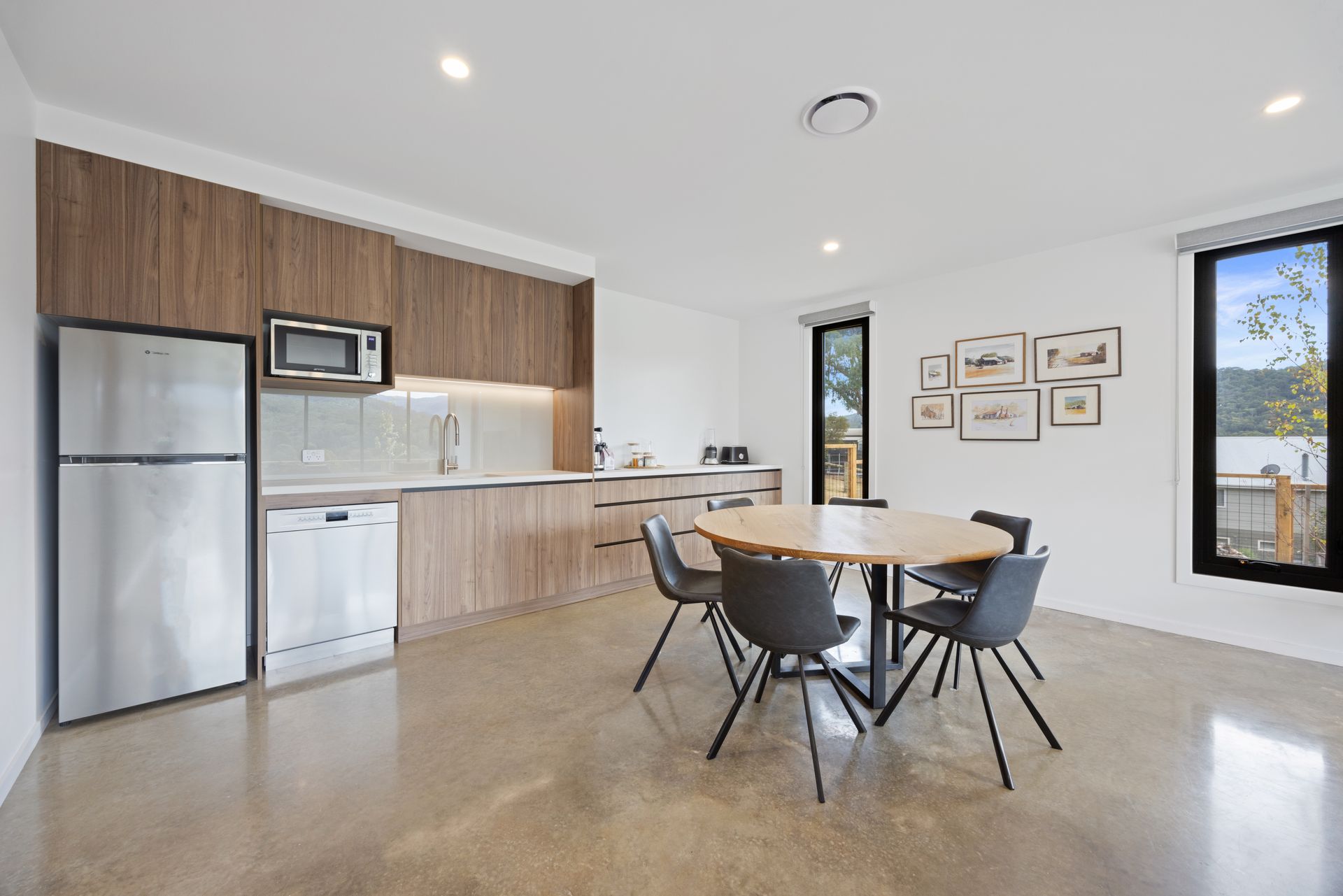 The downstairs level houses a games room, kitchenette, dining, and lounge area, three bedrooms, two bathrooms, another laundry and drying room. This provides options for you to retreat within the retreat or come together.